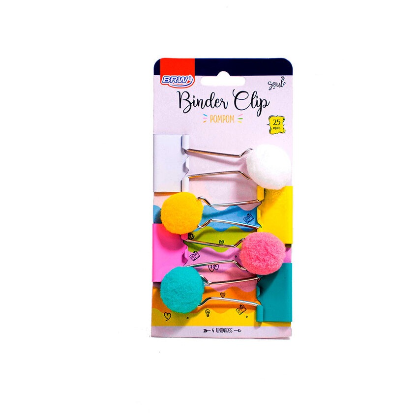 CLIPS PARA PAPEL BINDER 25MM – BLISTER C/ 4 UN – POMPOM BRW