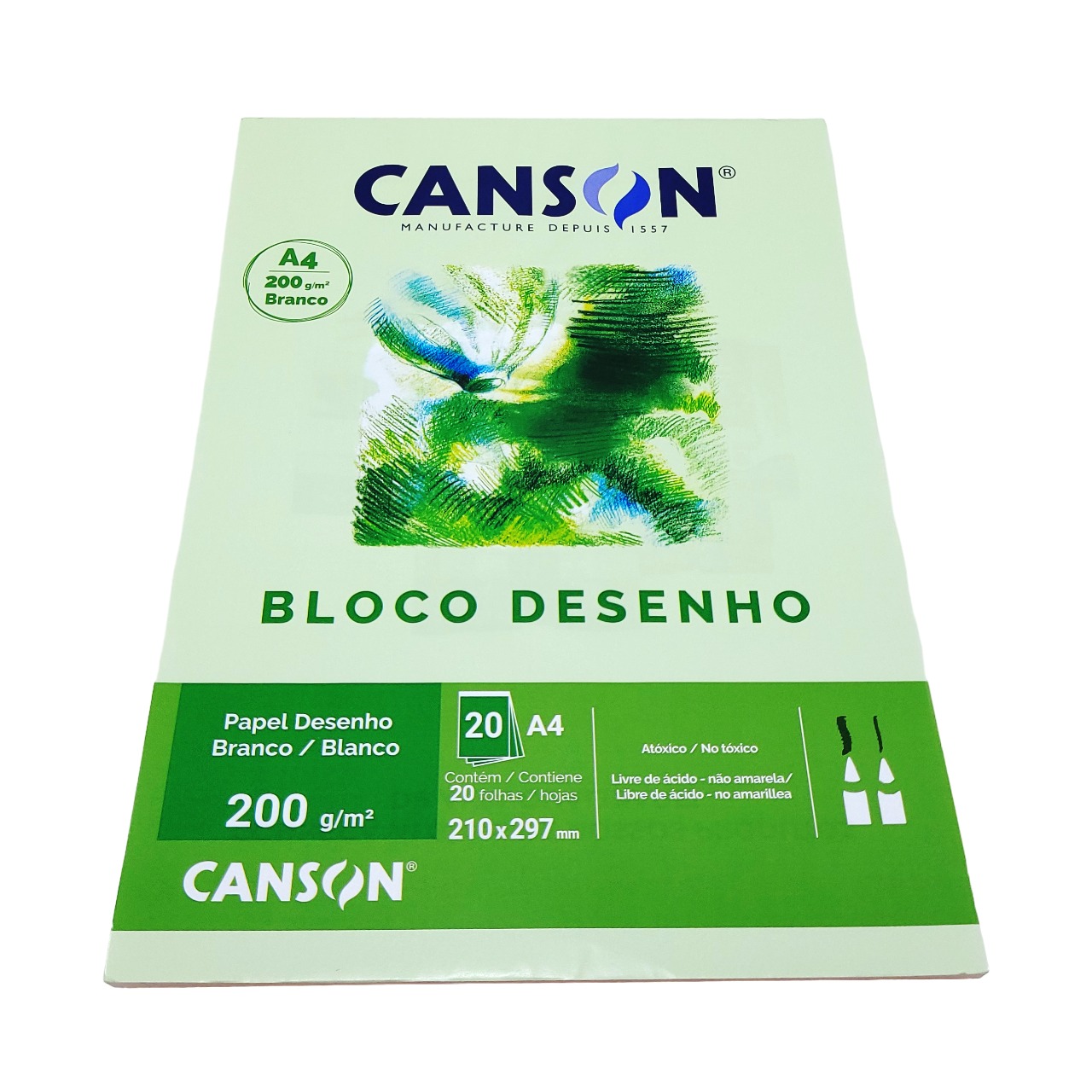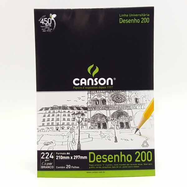 • Bloco Papel Canson A4 Desenho Branco C/20fls 200g