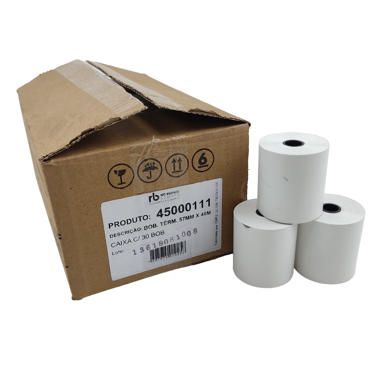– Dimensões: 57mm de largura (5,7cm) e 40m de comprimento;