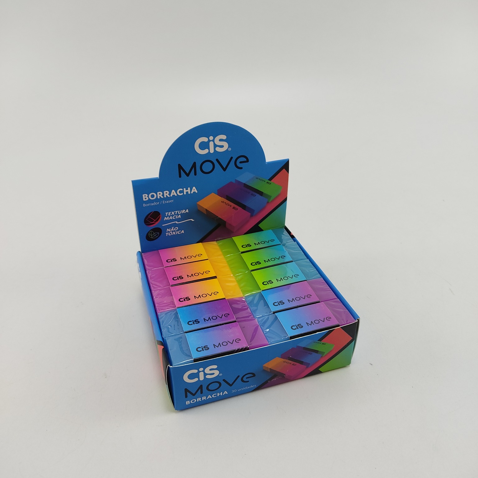 A Borracha CiS Move é uma borracha super linda, com 2 cores e capa protetora de papel. É uma borracha com textura macia e não tóxica.