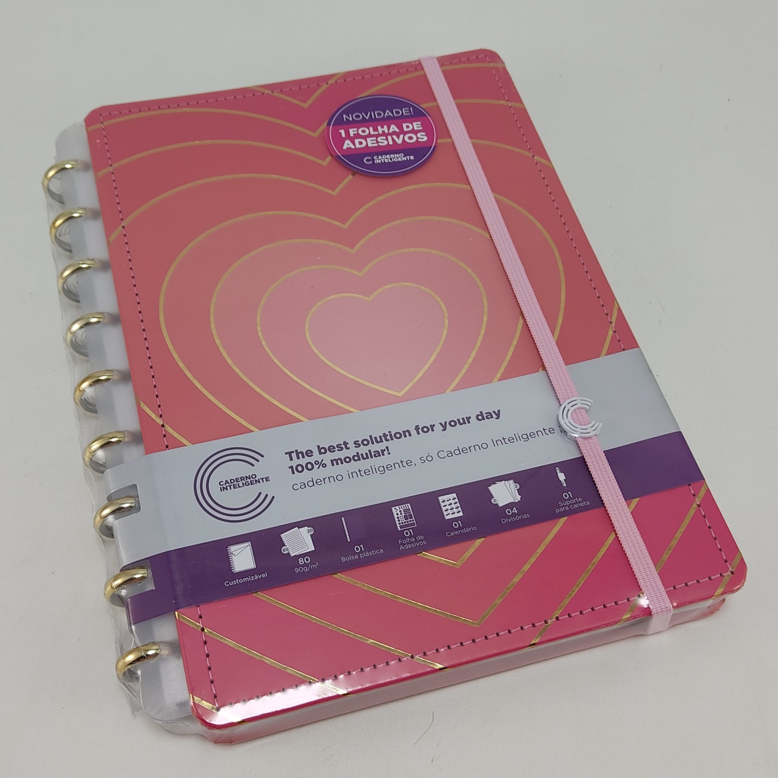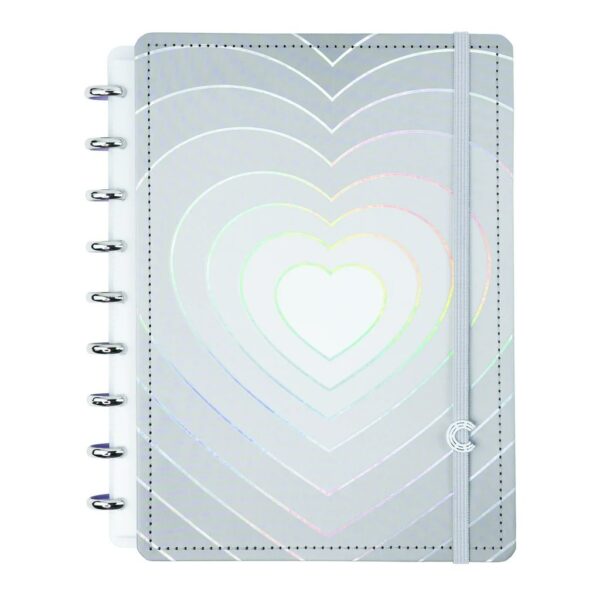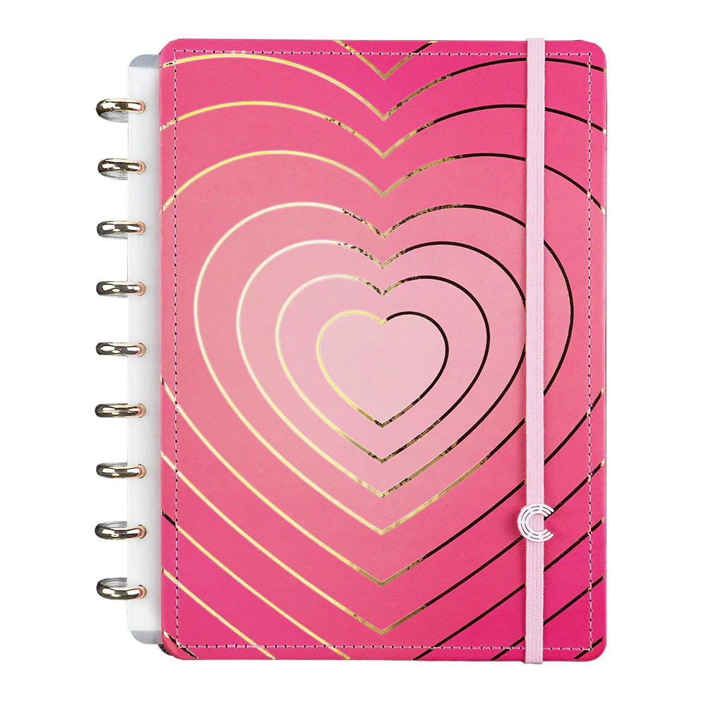 Apaixone-se e inspire-se com este caderno que vai completar o seu mundo rosa com um glow super sofisticado em formato de coração com hot stamping dourado.