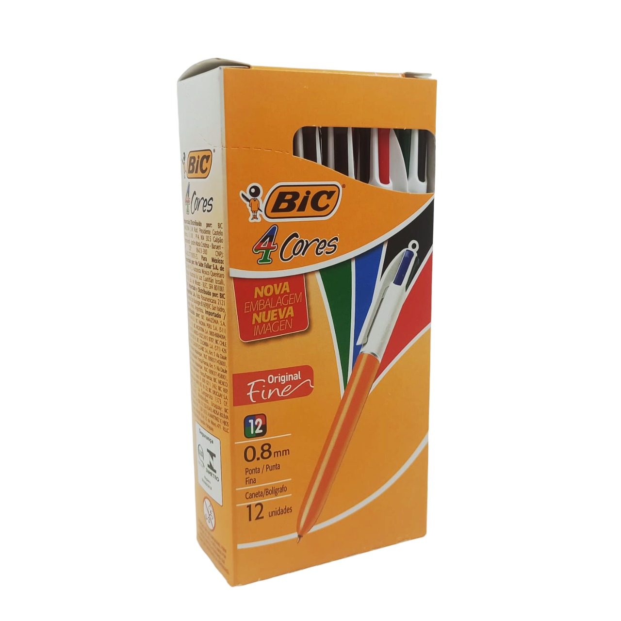 A caneta esferográfica BIC 4 Cores é um ícone de mercado! Muito prática: com apenas um clique no botão você seleciona a cor que deseja – azul, preto, vermelho ou verde. Essa versão 4 Cores Fine possui corpo laranja e ponta fina de 0,8 mm para maior precisão nos traços. Qualidade e eficiência, não trava durante o uso e escreve de 2 a 3km. Com a linha de materiais da BIC você garante toda a qualidade necessária para realizar suas tarefas diárias e trabalhos impecáveis.