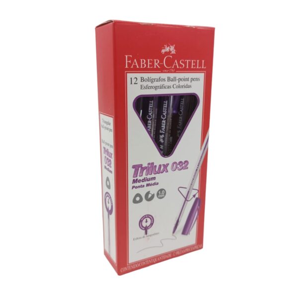 A Caneta Esferográfica da Faber-Castell une duas grandes características da marca: Beleza e praticidade. Apesar da praticidade/simplicidade das canetas, pode-se citar que tratam-se de canetas com grande charme e beleza externa de causar inveja as concorrentes. A Trilux tem ponta de 1.0 mm, permitindo uma escrita macia e sem falhas. Possui tinta de alta qualidade e durabilidade: escreve muito mais. Além disso, seu formato triangular ergonômico permite o encaixe perfeito na mão.