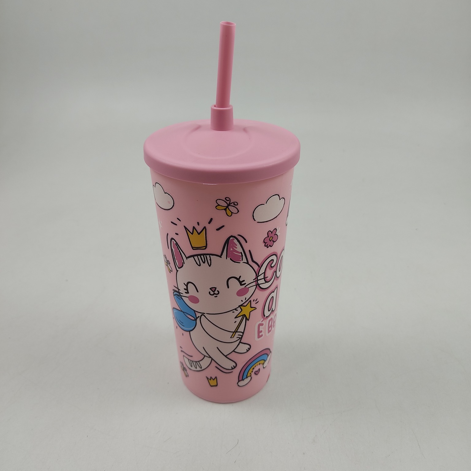 O COPO PLÁSTICO COM CANUDO é ideal para tomar seu suco ou refrigerante com segurança e praticidade.