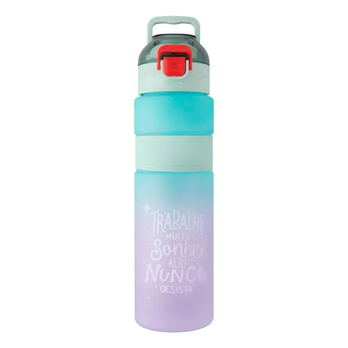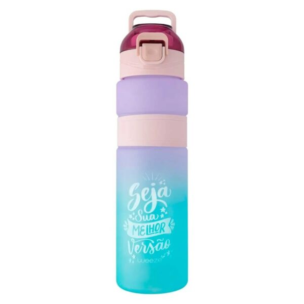 Garrafa -C/ Alça -Frases Motivacionais -Trava na Tampa -Degradê Capacidade: 800ml Composição: Plástico Moment