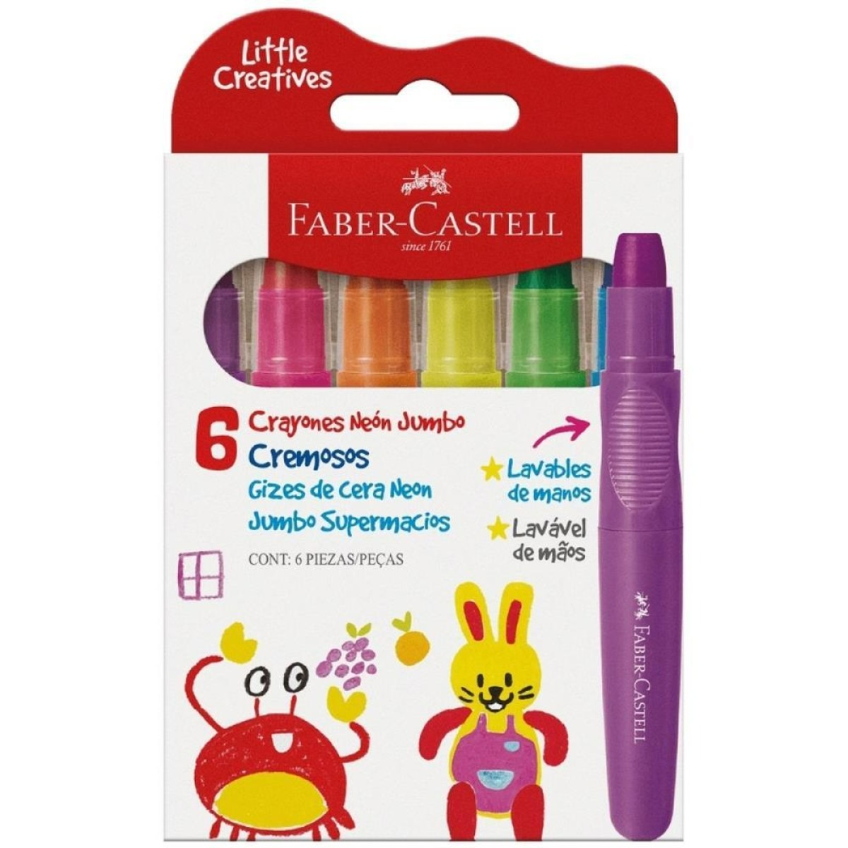 • Giz Cera Faber Castell Little Creatives Supermacio 6 Cores Neon