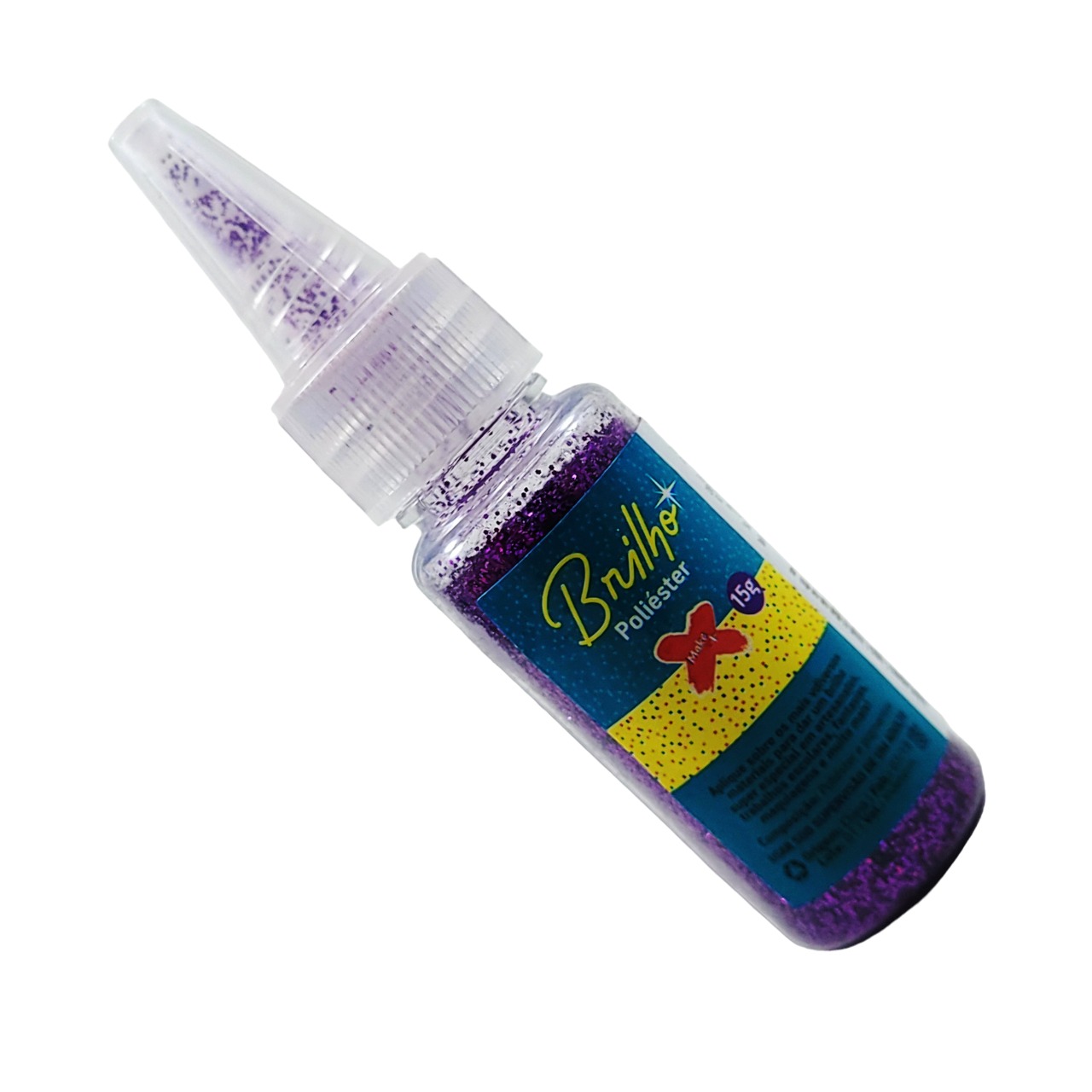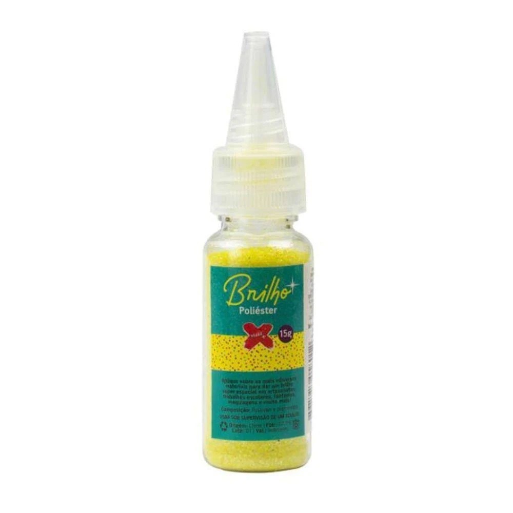 Glitter em poliéster garantindo mais brilho e resistência a temperaturas e produtos com solventes. São totalmente atóxicos, permitindo o uso em maquiagem. Bisnaga com bico dosador contendo 15g.
