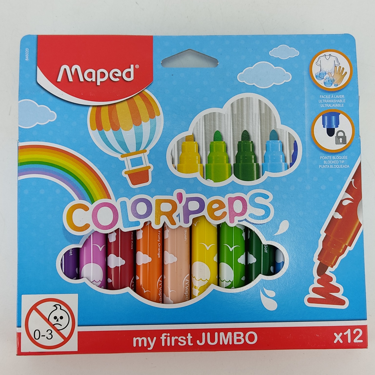 Canetinha Color’Peps Jumbo com 12 cores. Produto especialmente desenvolvido para a primeira infância. Canetinha com maior diâmetro: conforto e firmeza para as mãos pequenas das crianças.