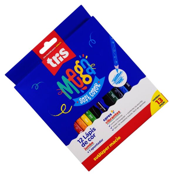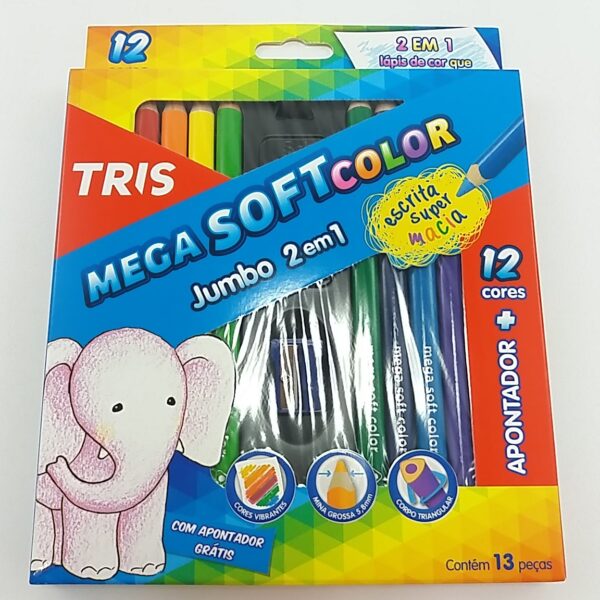 - Lapis Cor Tris Mega Soft Color Jumbo 12 Cores + Apontador