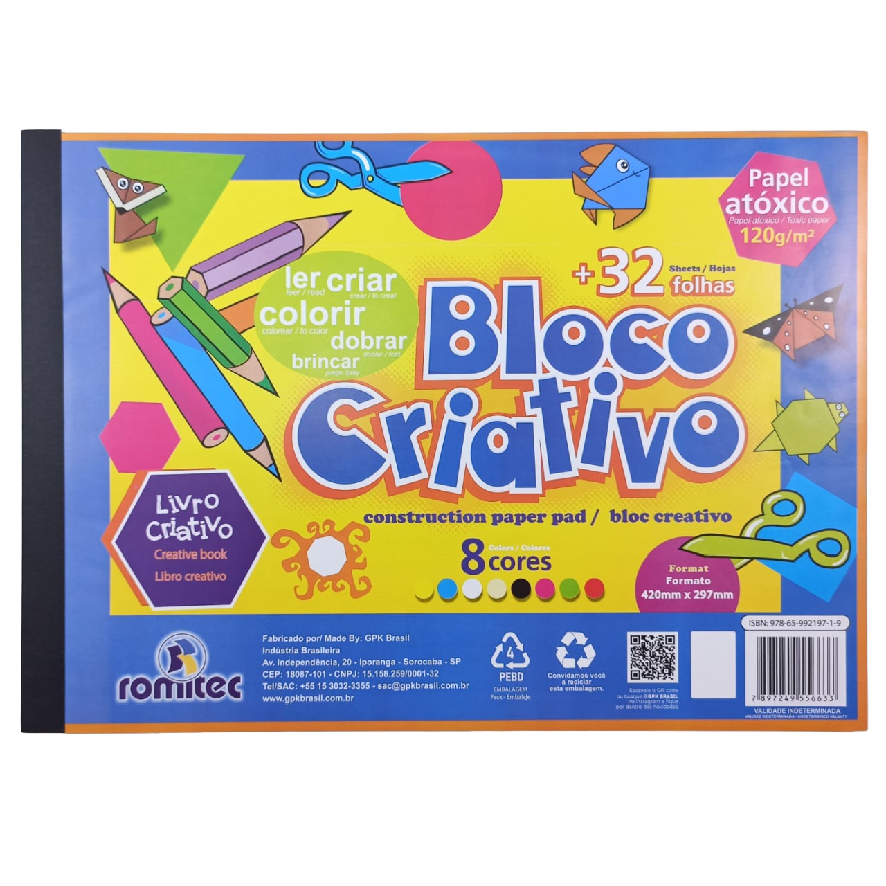 O bloco Criativo da romitec é um livro pedagógico com atividades e papeis coloridos de alta gramatura com estampas delicadas e divertidas para serem aplicadas em diversos trabalhos manuais.
