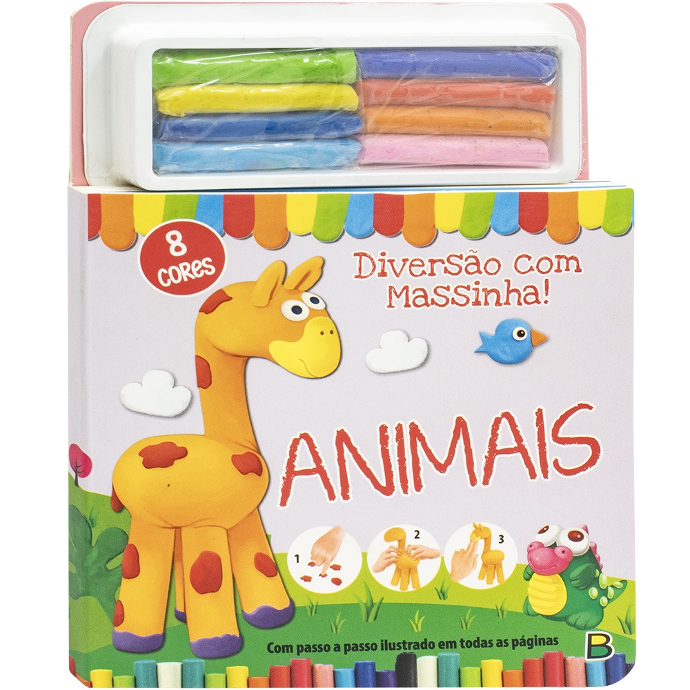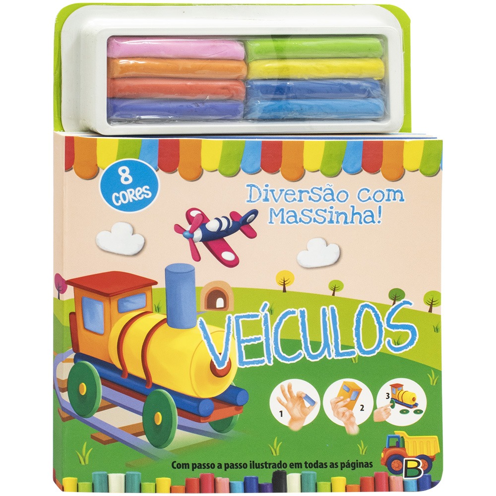 Estimule a criatividade do seu filho com este livro que acompanha 8 cores de massinha e passo a passo para criar os objetos favoritos.