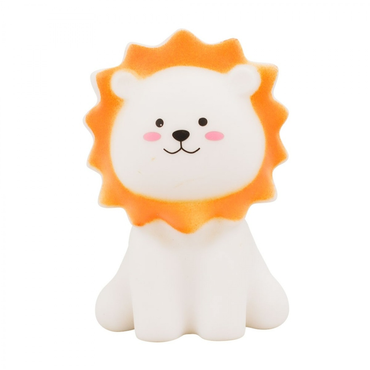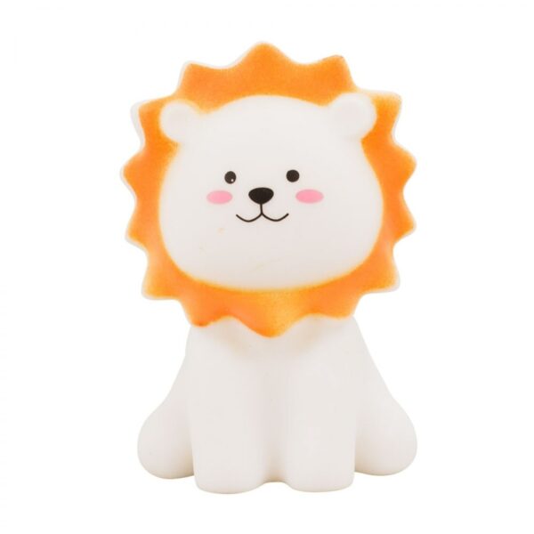 Luminária no formato de um leão com 11,5 cm de altura. Botão ligar/desligar, ao ligar, acende uma luz no interior do leão.