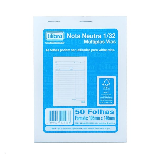 • Nota Neutra Tilibra Impressos 1 Via 50fls 1/32 P
