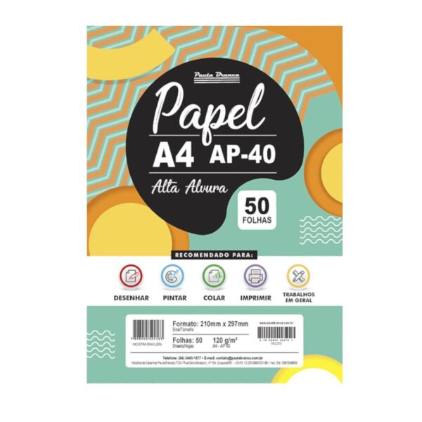 - Papel Desenho Pauta Branca A4 C/50fls Ap 40 120g