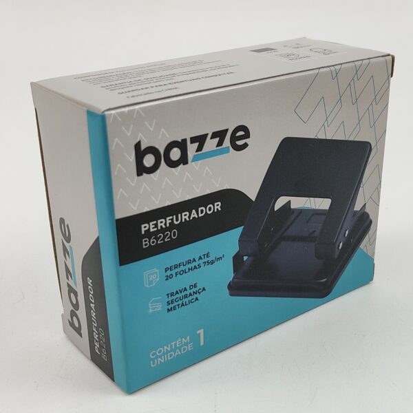 Perfurador B6220 – 2 Furros – 20 Folhas – Metálico – Preto – CX C/1 UN – Bazze