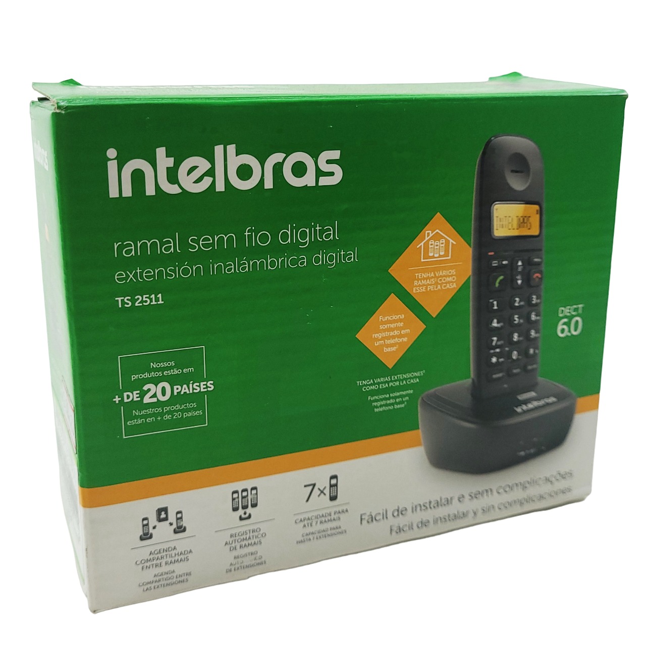 – O TS 25 é um telefone sem fio digital prático com a tecnologia DECT 6.0, que proporciona um áudio limpo e sem interferências. Possui display luminoso que auxilia no uso noturno, identificação de chamadas¹, agenda compartilhada entre ramais², registro automático de ramais, dentre outras funções.